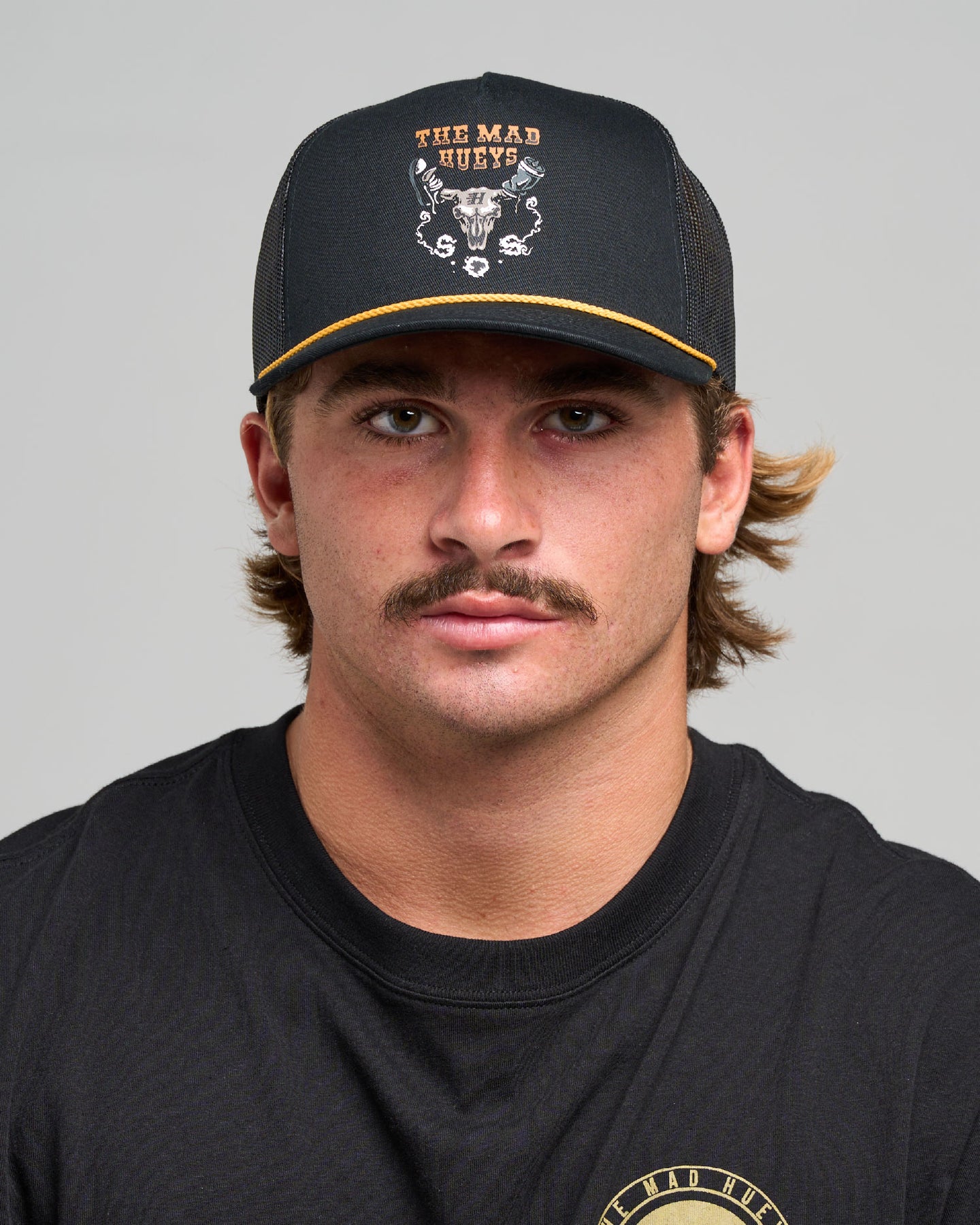 When the outback calls, answer in style with the SOS | TWILL TRUCKER in Black. Featuring the same bold cactus-themed design as the tee, this black twill trucker is perfect for those who like their gear rugged, ready, and packing plenty of Hueys attitude. Built tough for all-day wear whether youโre blazing trails or kicking back with the crew.