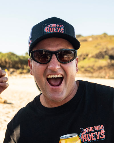 The Mad Hueys Trucker Hats Are Built to Send It! Whether you're hittin' the highway, chasin' swell, or castin’ lines at sunrise, our trucker hats are made to keep ya cool and covered. With mesh backs for breathability and that classic curved peak, these lids are tough as nails and ready for whatever the day throws at ya. So gear up, flick the peak, and ride out in true Mad Hueys fashion.