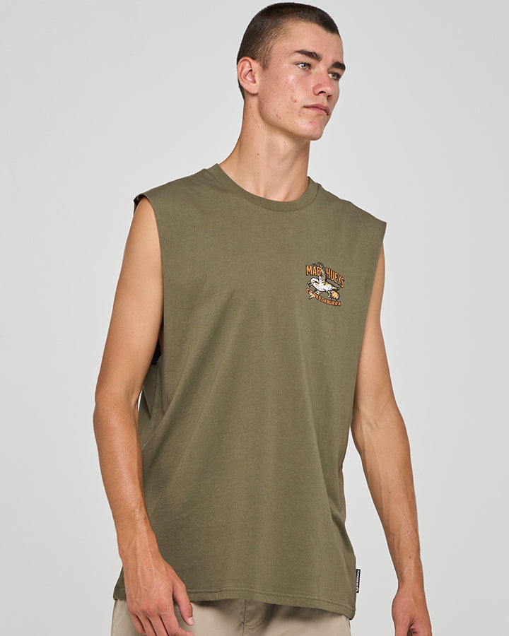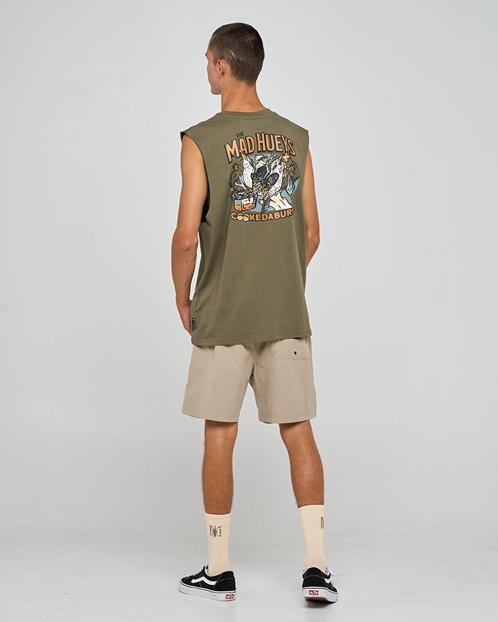 Get ready to turn heads in the Cookedaburra Trio Muscle Shirt in olive. With its cheeky "Cookedaburra" design and relaxed fit, this shirt is perfect for those days when you’re all about the sun, surf, and a bit of cheeky fun. Whether you’re out on the boat or just kicking back, this muscle shirt will keep you cool and looking like a true Hueys legend.