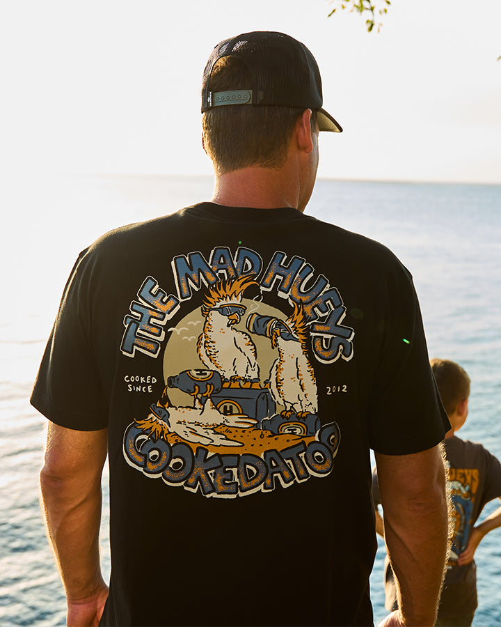 Let loose with the Cookedatoo Trio SS Tee, where the iconic cockatoo meets ice-cold beers and a good dose of chaos. This cheeky design features a trio of cockatoos living their best life—getting cooked and ready to party.