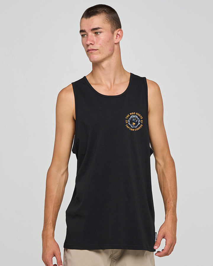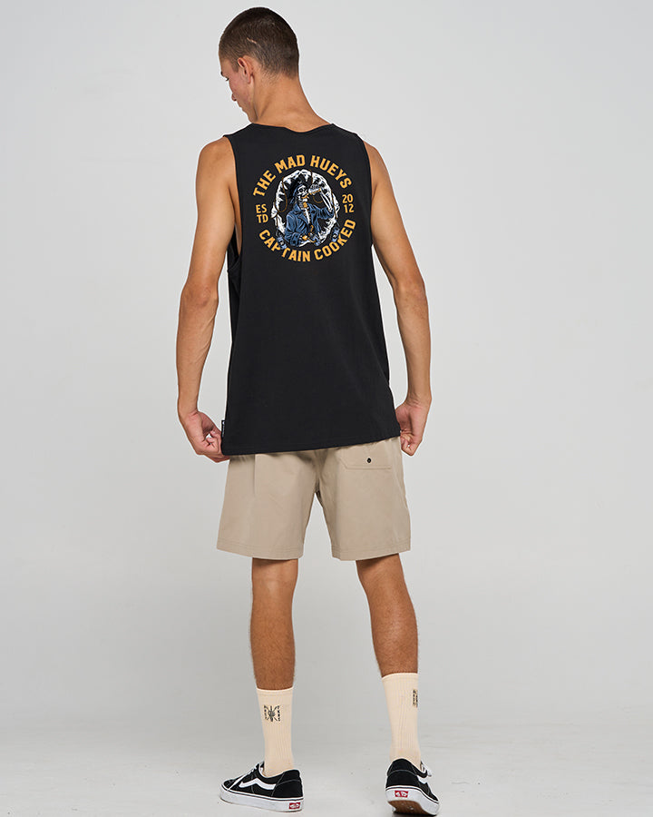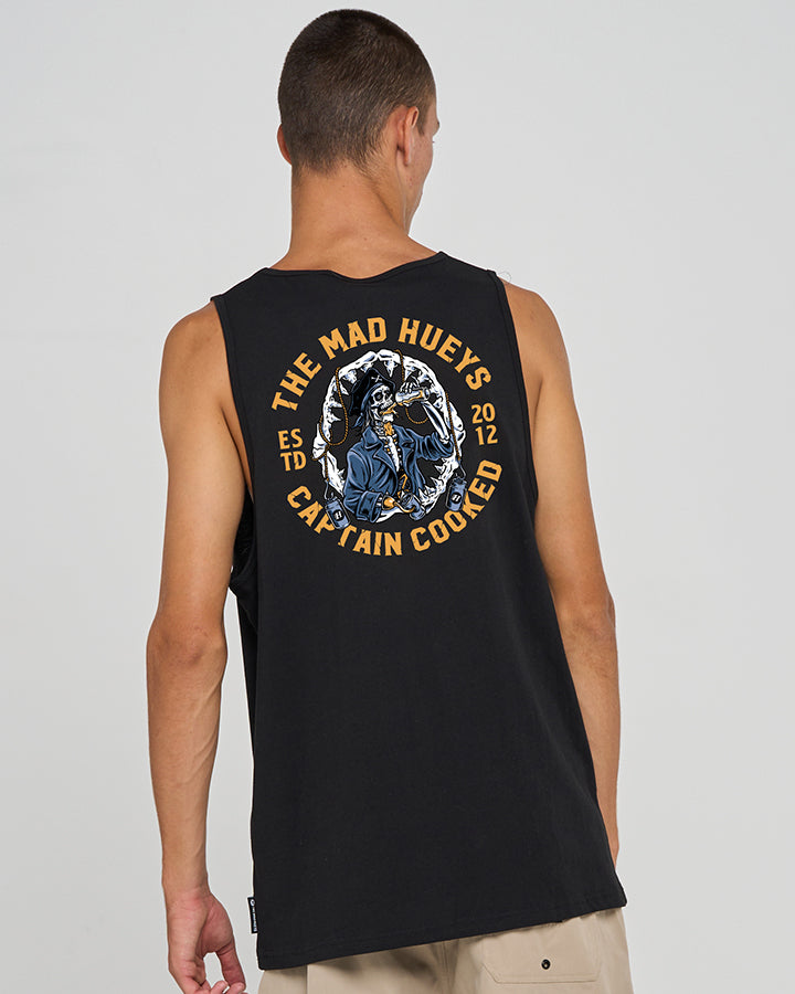 Set sail with The Mad Hueys CAPTAIN COOKED JAWS Tank in Black, a fearless nod to life on the high seas and the good times that follow. Featuring a bold Captain Cooked pirate graphic on the back, this tank brings The Mad Hueys’ signature mix of chaos, laughs, and ocean attitude to your everyday gear.
