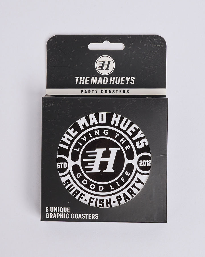 Features a unique Hueys print on each coaster