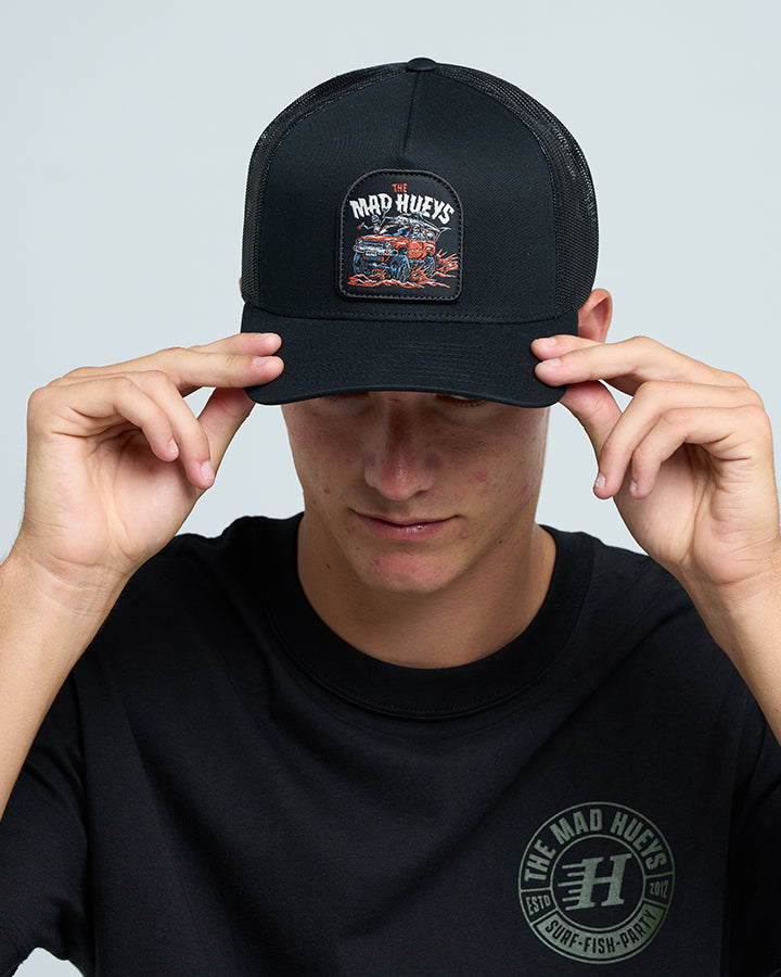 The Send It Twill Trucker in black is a no-brainer for the legends who live to go all in. With a classic fit and breathable mesh back, it’s your go-to lid for keeping cool while you’re chasing waves, reeling in fish, or sending it hard at the pub. Rep the Hueys Crew with pride.