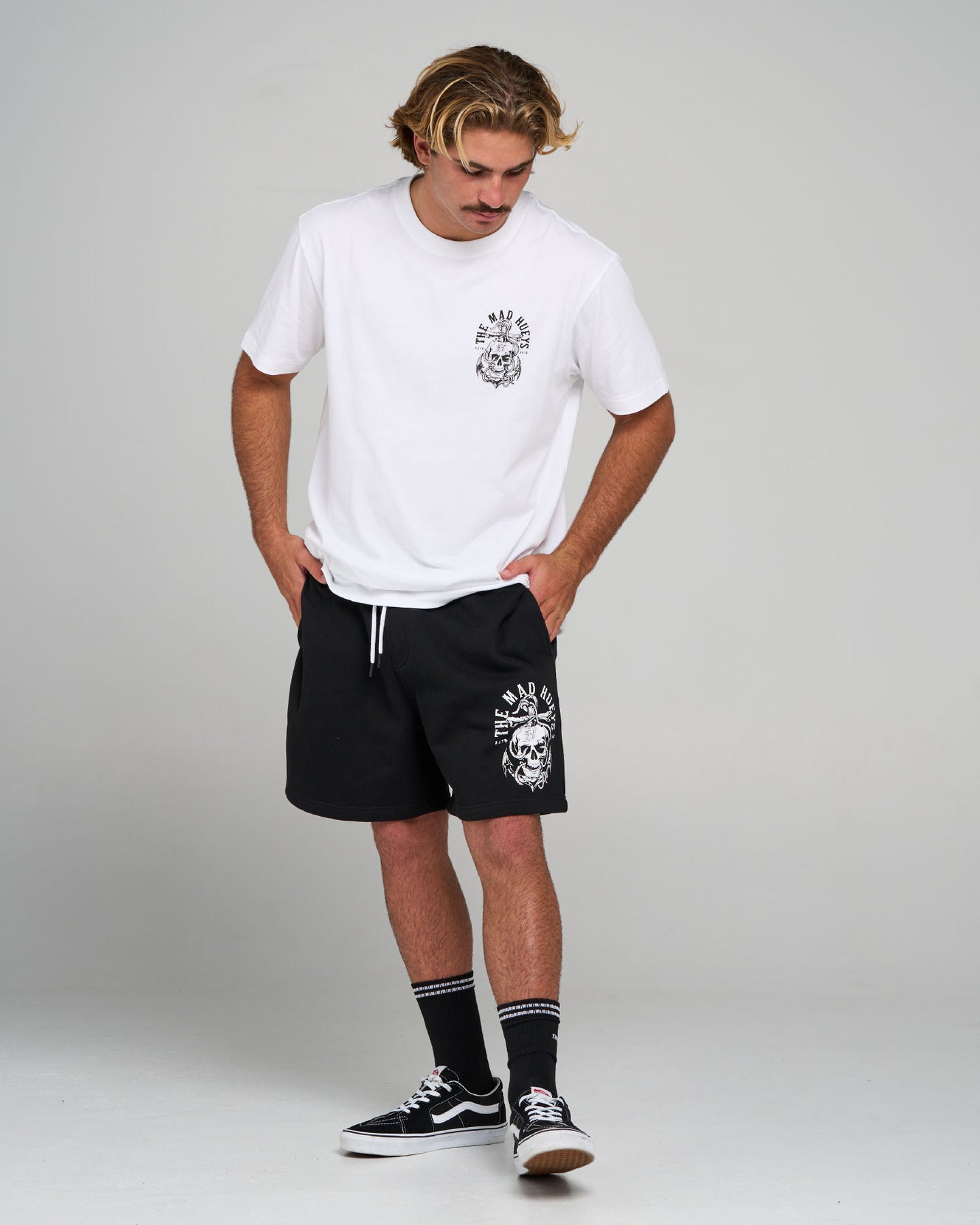 Keep it cool and bold on and off the water with the FK OFF FISH | TRACKSHORT in Black. Featuring the classic “Fk Off I’m Fishing” slogan, rude finger fish skeletons, and hibiscus flowers just like the tee, these track shorts are perfect for those who want to make their fishing intentions crystal clear with that signature Hueys edge.