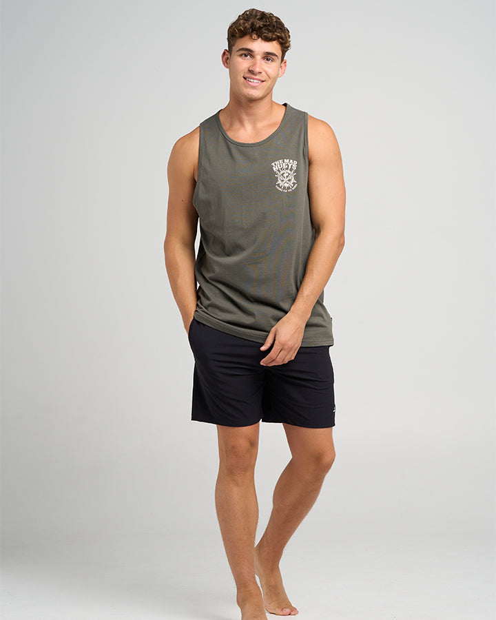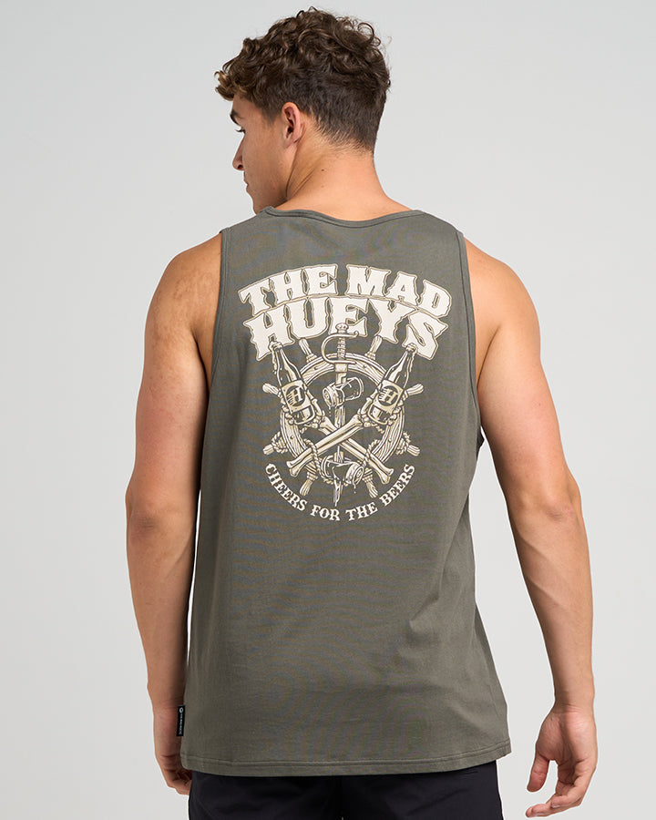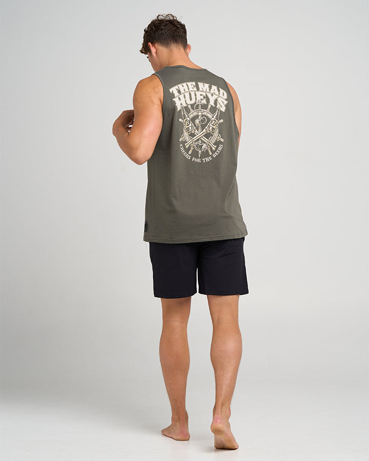 The Ship Wheel Beers Tank in Charcoal by The Mad Hueys is for the crew who know every mission ends with a cold one. Featuring a bold ship wheel and beer graphic, the Ship Wheel Beers tank keeps you cool whether youโre on deck, at the pub, or sinking tins in the backyard. Cheers for the beers, legends.