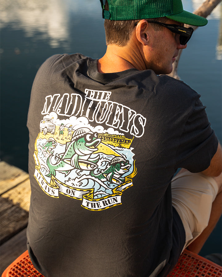 Make a statement with The Mad Hueys’ Always Running SS Tee in Vintage Black – a bold graphic t-shirt that brings the chaos, humour, and fishing lifestyle straight to your wardrobe. Featuring a unique “Always on the Run” print with fish outsmarting the law, this tee is made from soft, durable cotton for all-day comfort. Perfect for beach days, fishing trips, or kicking back with the crew, it’s a must-have for anyone living life the Hueys way.