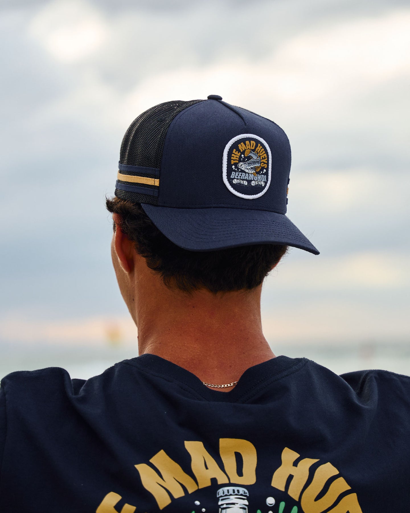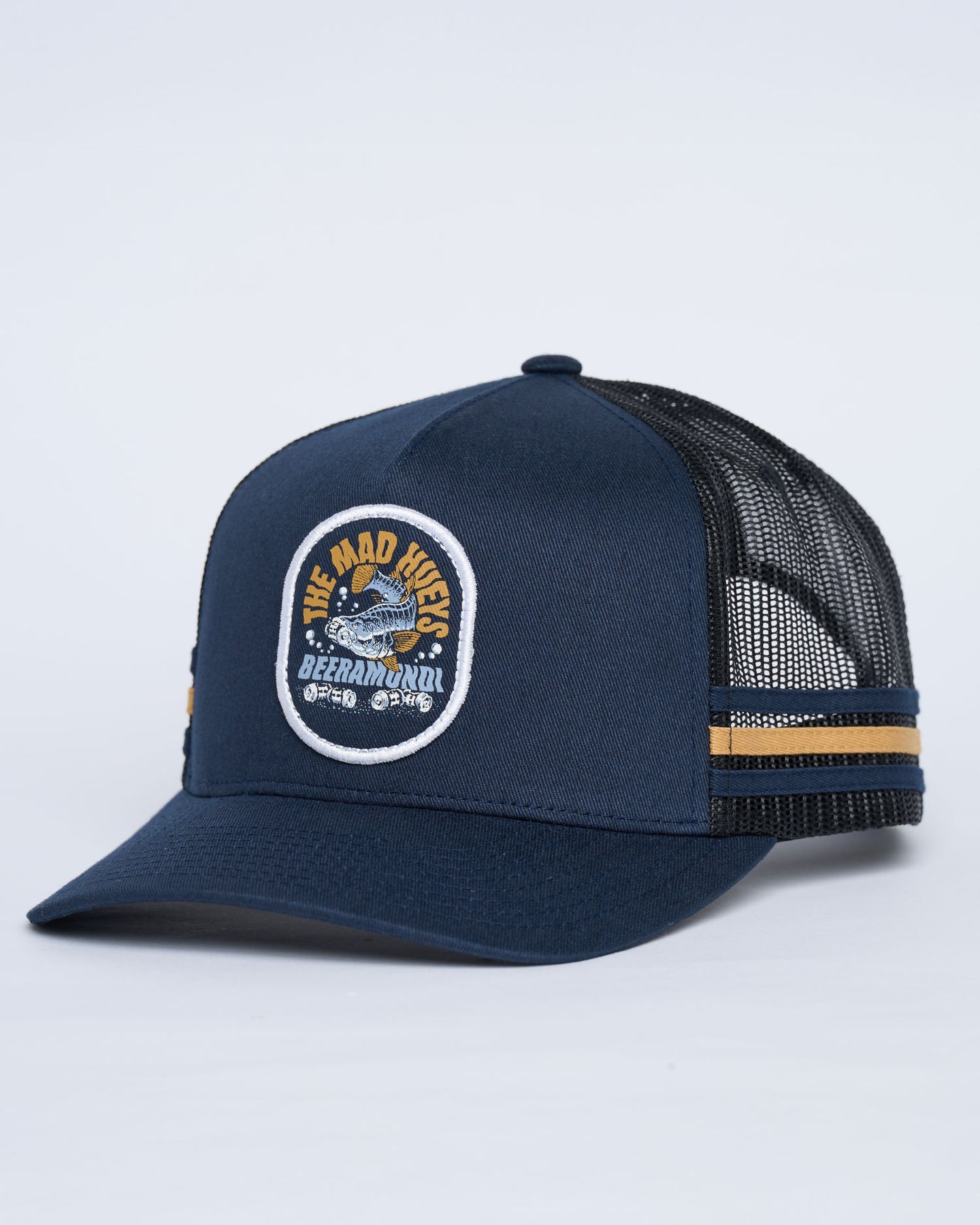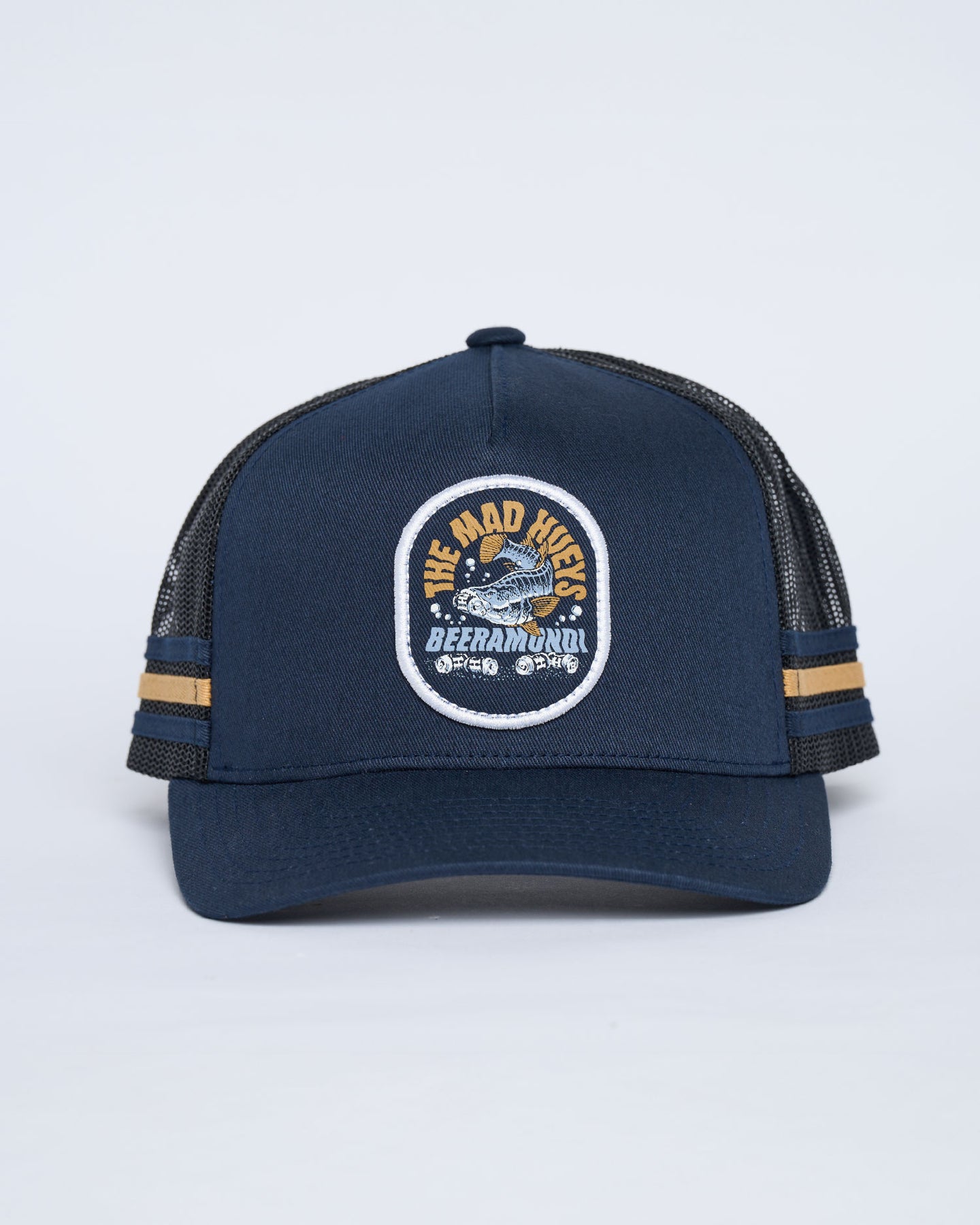 For those who chase barramundi and cold ones with equal passion, the BEERAMUNDI | TWILL TRUCKER in Navy is the perfect fit. Featuring the same iconic barramundi and beer design as the tee, this navy twill trucker brings laid-back Hueys vibes wherever you go. Built tough and comfortable, it’s made for those long days on the water and late nights with the crew.