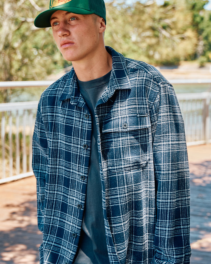 Stay warm and sharp with the Hazza Flannel in Navy by The Mad Hueys – a timeless plaid shirt built for comfort, durability, and all-day wear. Featuring a classic navy and black check pattern, button-up front, and chest pocket with subtle Hueys branding, this flannel is perfect for layering or wearing solo. Whether you’re hitting the pub, heading out fishing, or cruising through the weekend, it’s the ultimate mix of rugged style and laid-back vibes.