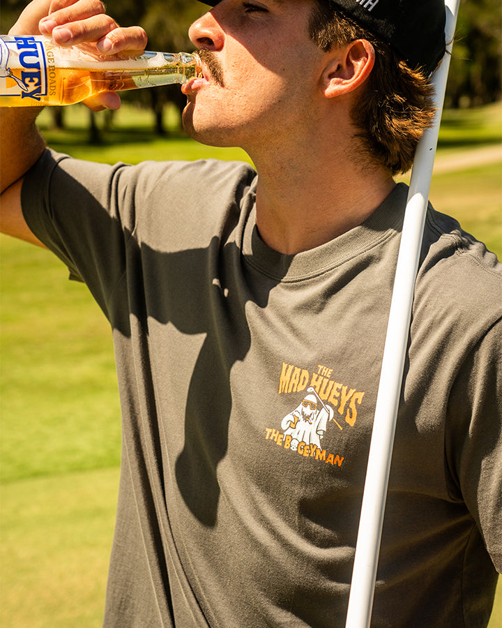 When Halloween hits the fairway, the BOGEYMAN | SS TEE in Charcoal shows up to haunt your game. Featuring tombstones, the grim reaper, and all the spooky vibes, this tee turns golf into a mad Hueys-style fright fest. Perfect for those who like their rounds with a side of mischief and a cold one in hand. Rock this charcoal tee if you’re ready to scare the bogey right off the course.