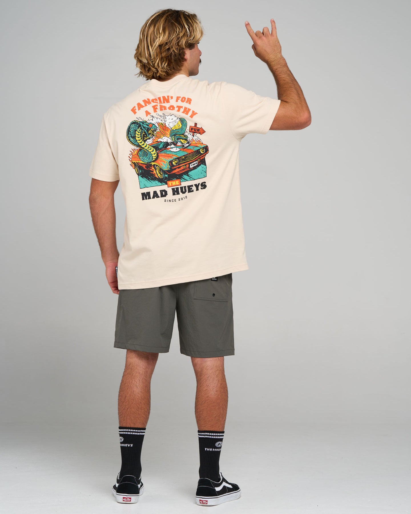 Start your engines and burn some rubber with the FROTHY FANGING | SS TEE in Black — a full-throttle rush straight to the pub. Featuring a race car, a snake, and blazing flames, this tee is made for the crew who live fast and drink faster. Whether you’re chasing mates or just chasing cold ones, this black tee screams Hueys energy and pure Aussie grit. Perfect for the blokes who never slow down and always froth for the next sesh.
