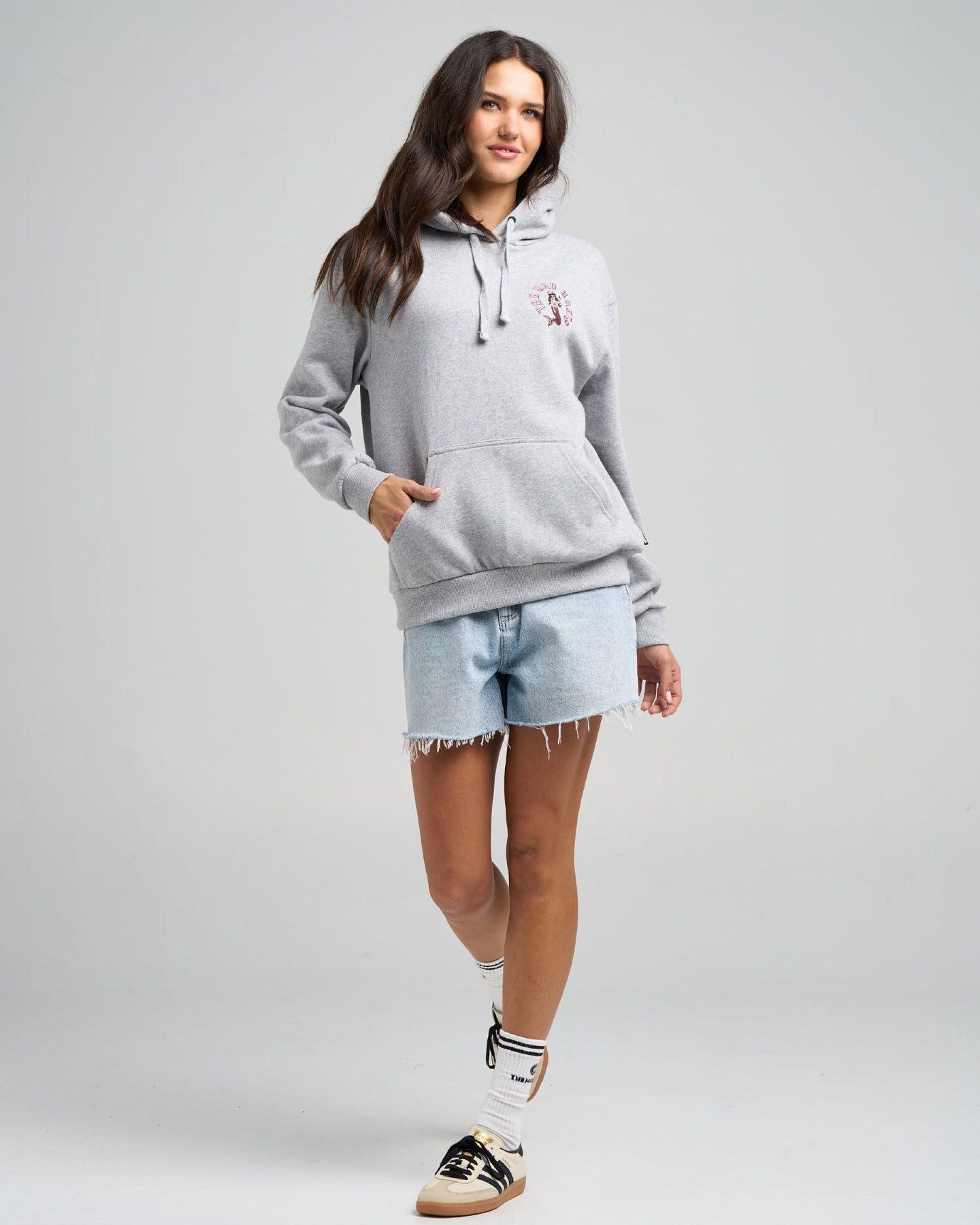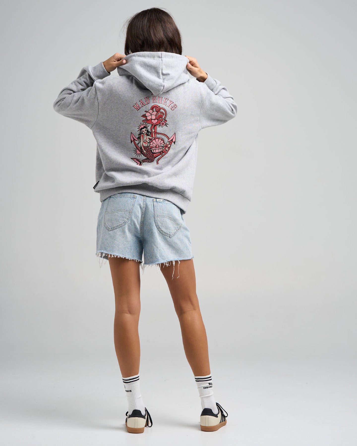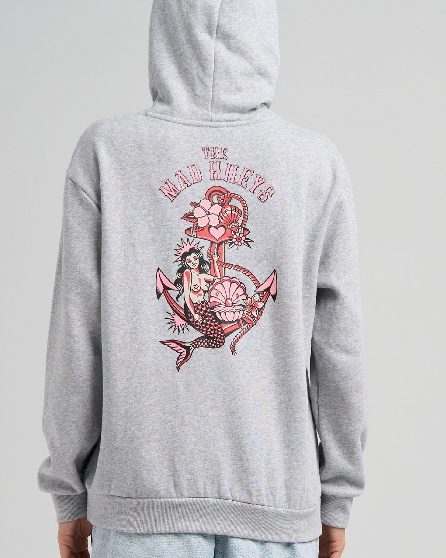 Cozy up in this soft grey marle hoodie, rocking the same cool Mermaid Anchor design you love — but this time with eye-catching pink and red graphics that add a fresh, feminine pop. Perfect for chill days when you want that laid-back beach style with a splash of colour. Whether you’re out for a walk or kicking back at home, this pullover brings warmth and a simple, cute vibe all in one.